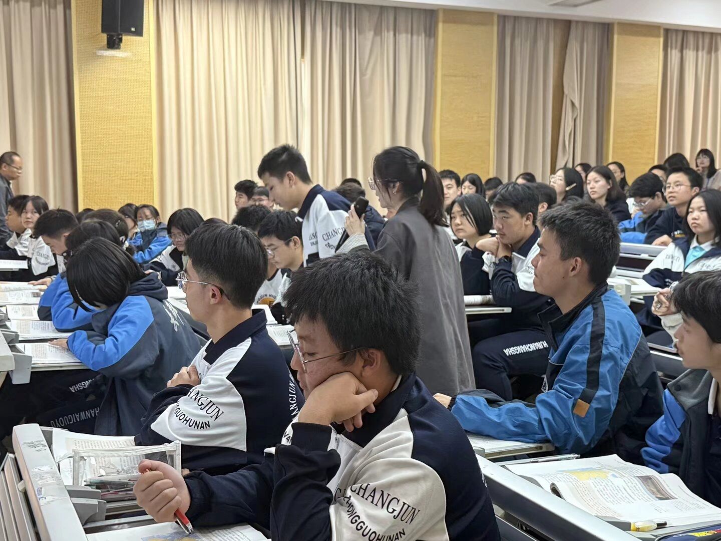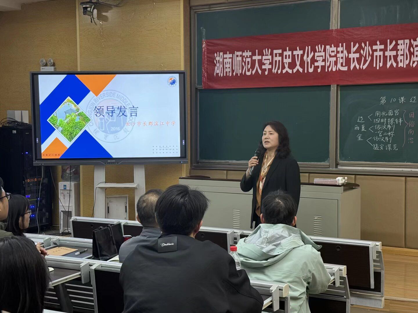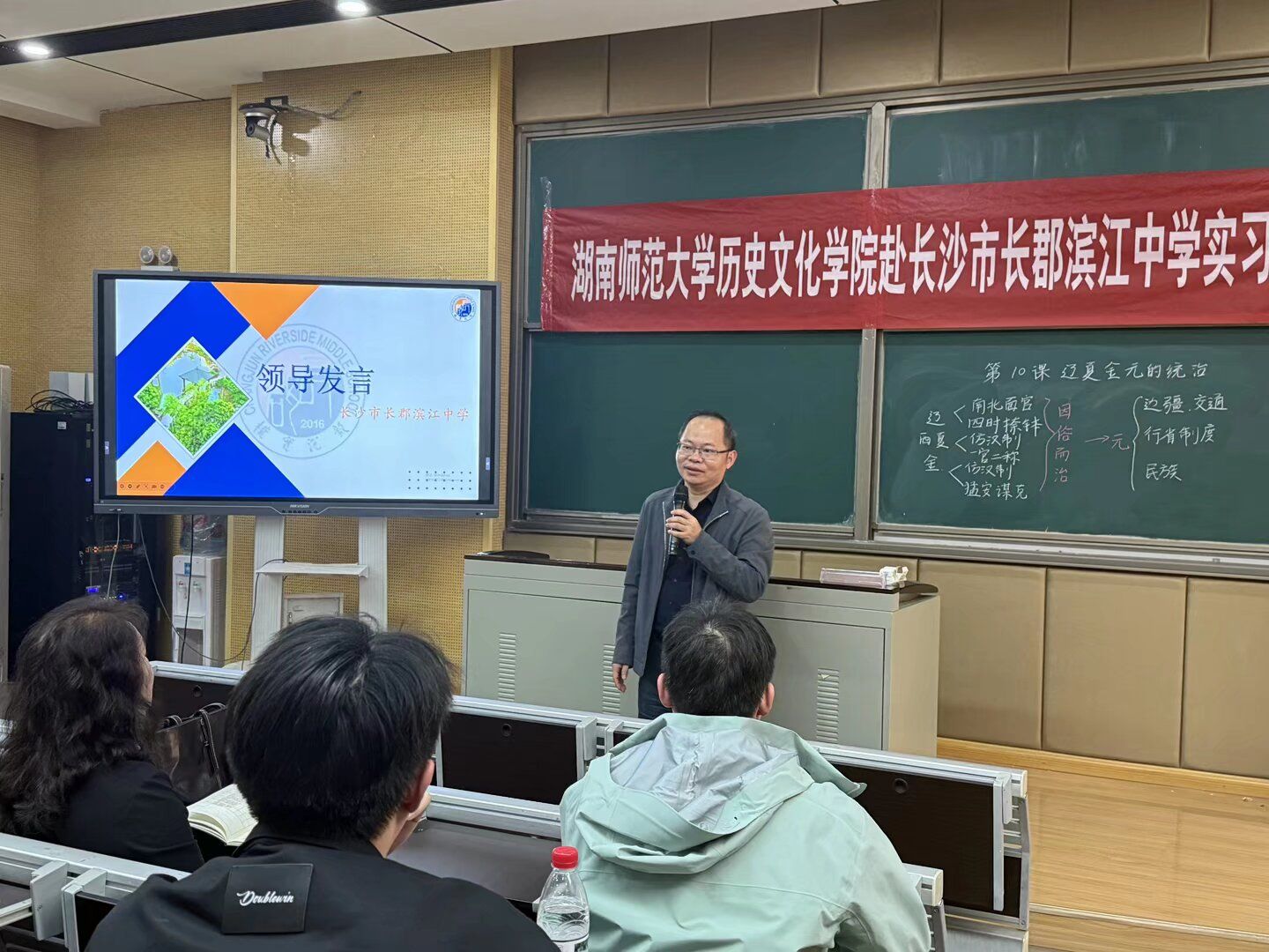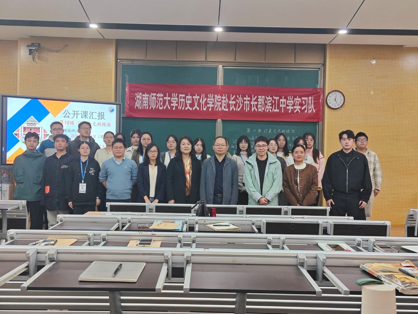 WilliamHill(威廉希尔)官网党委副书记马欣、指导老师李巧、李华文、学工办老师何昊,长郡滨江中学副校长胡云、教务处副主任兰波、高中历史组老师张涛、徐梦鸽、李素、丁敏、吴艺军等莅临指导,全体实习队员参与观摩。