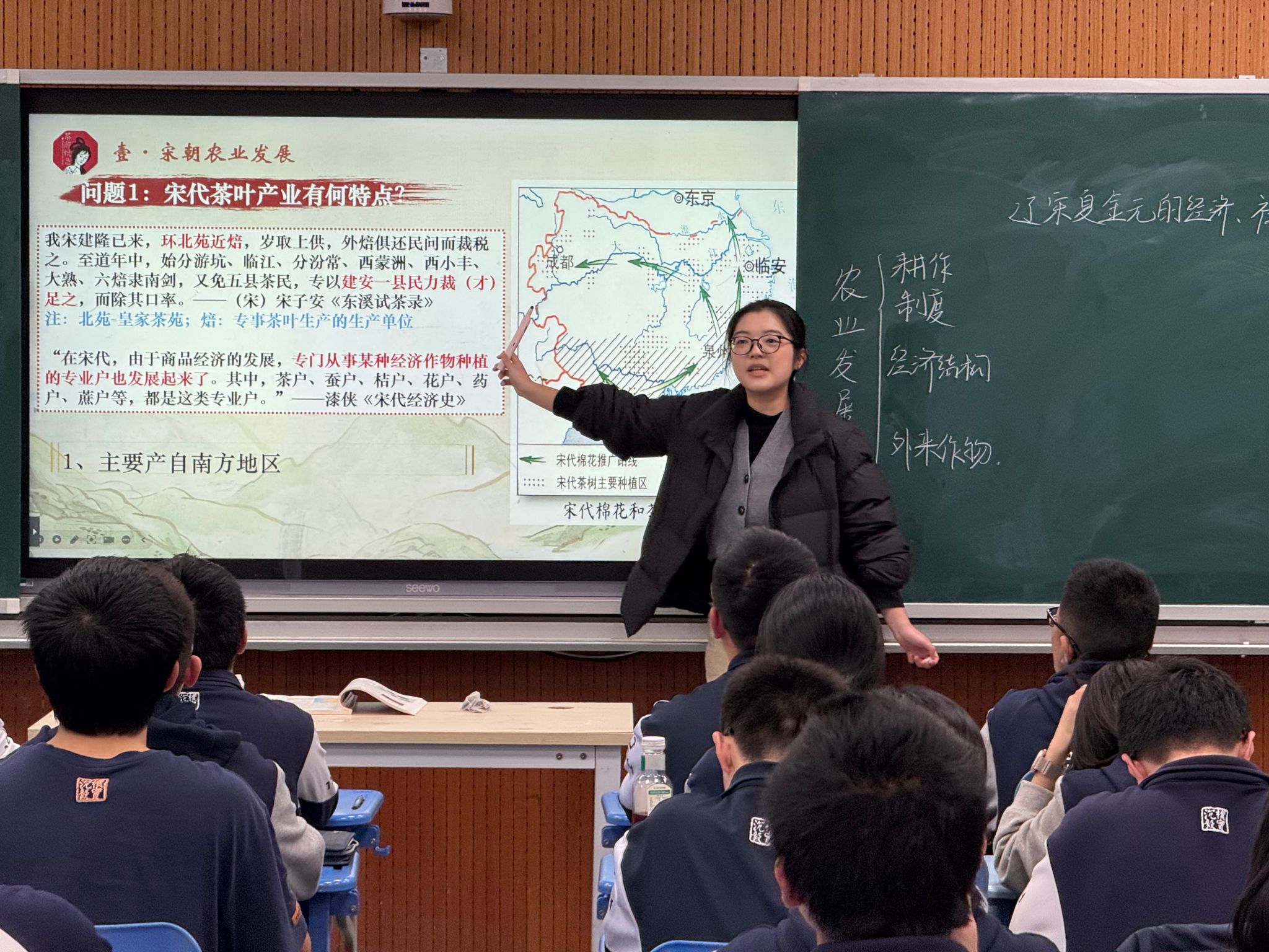 公开课由实习队员、WilliamHill(威廉希尔)官网2022级实习队总队长姚丁方执教,授课内容为《辽宋夏金元的经济与社会》,以“回到大宋开奶茶店”为情境线索,巧妙地串联起辽宋夏金元时期的经济、社会状况等知识脉络。指导老师充分肯定这堂公开课风格生动活泼,整体设计感强,史料丰富,讲授维度多元化,紧扣教学的重难点,师生互动紧密,充分展现了授课老师的素养。老师们也对教学有待优化之处进行了探讨。评课结束后,实习队队长陈琳琳汇报了实习队的工作成果。
