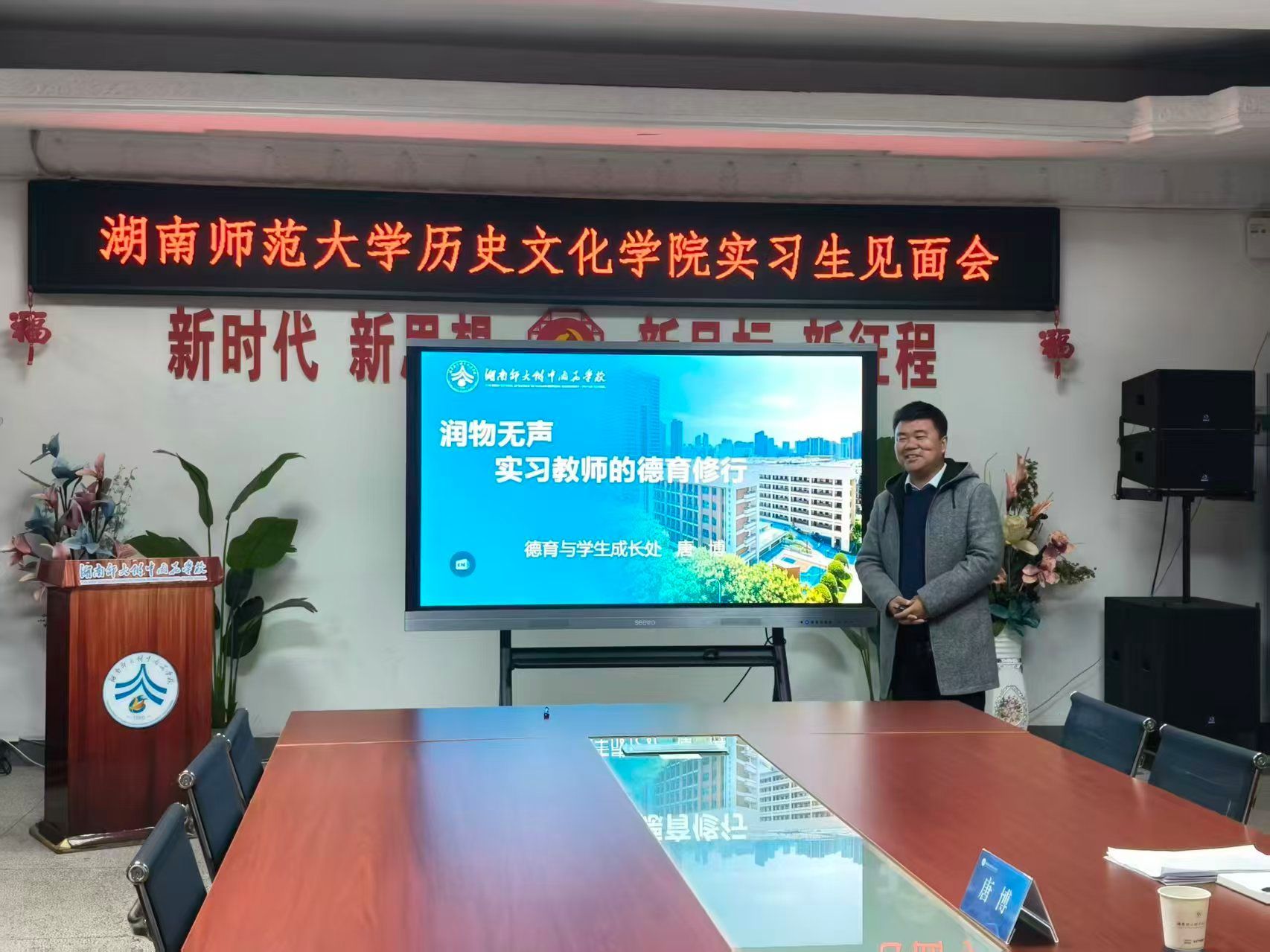 历史教研组长陈兰霞老师作为师大校友,以师姐身份向学弟学妹们送上殷切嘱托,并分享了自己从师大研究生毕业后在附中雨花的成长历程,承诺教研组全体指导老师将倾囊相授,做实习生们坚实的后盾。