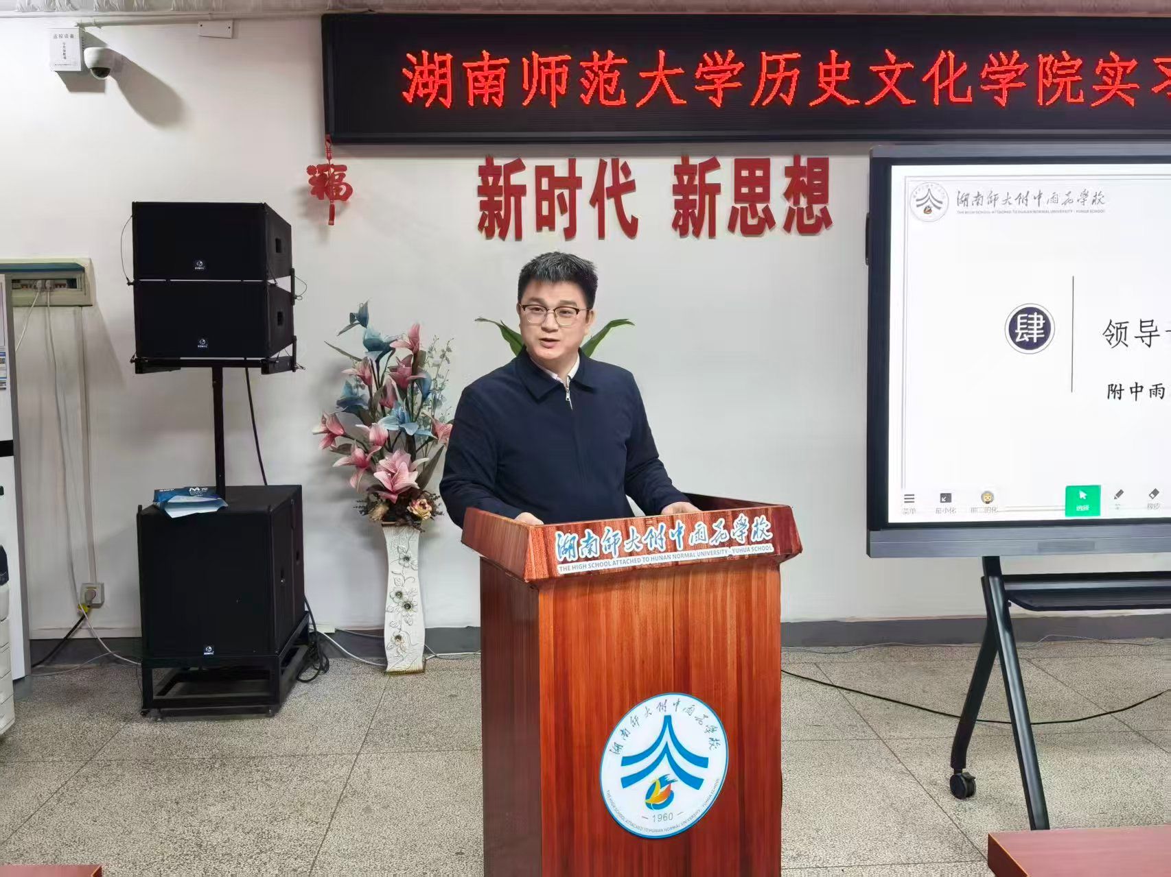 实习领队李群老师对湖南师大附中雨花学校的精心安排表示感谢,并向全体实习生提出四点要求:虚心学习、脚踏实地、恪守师德、团结协作,希望同学们珍惜宝贵实习机会,早日成长为有理想、有本领、有担当的新时代教师。