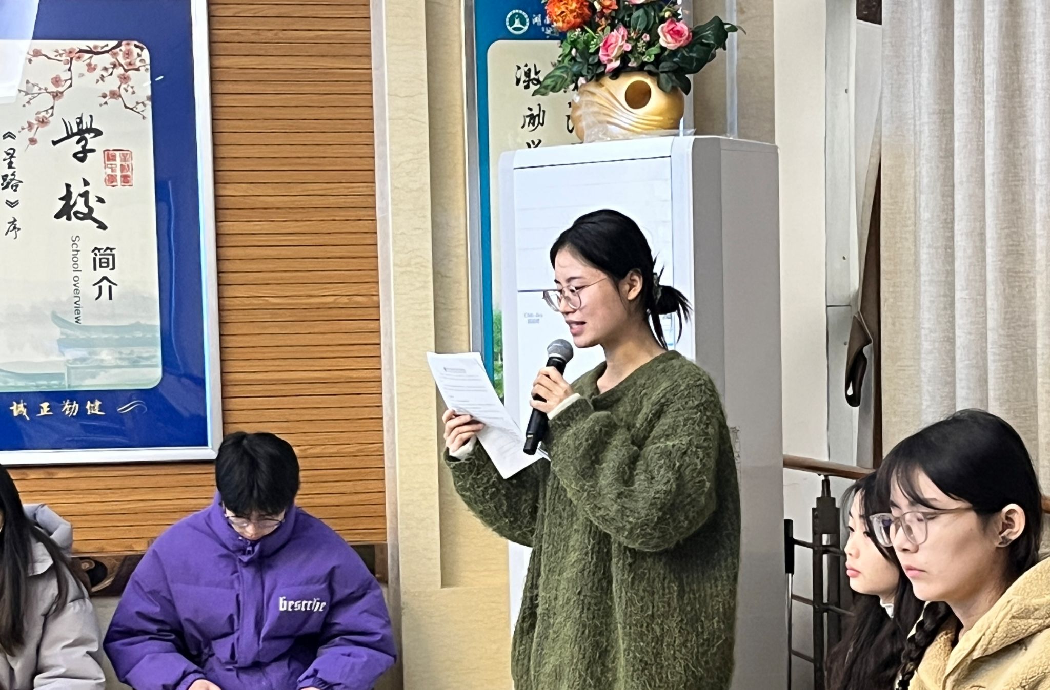 实习学生代表谭薇随后发言。她代表全体队员向附中星城提供的宝贵实习平台表示诚挚感谢。她表示,此次实习是从师范生向教师角色转变的关键历练,全体队员将秉持谦逊态度向带教老师虚心求教,严格遵守学校规章制度,把历史学科专业知识与教学实践深度融合,以知行合一的行动高质量完成各项实习任务,展现湖师大学子的良好精神风貌。