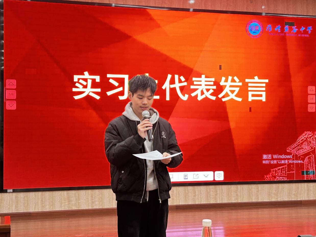 会上,实习生代表连晟毅同学代表全体队员作了表态发言。他承诺,全体实习生必将以饱满的精神状态、谦虚的学习态度和严谨的工作作风,全身心投入到接下来的实习工作中。大家将严格遵守学校的各项规章制度,认真完成听课、备课、授课及班级管理等各项任务,勇于尝试,积极将大学所学理论与中学教育实践深度融合,在实践中不断追求进步与突破。