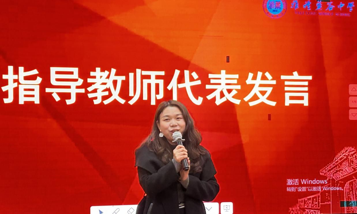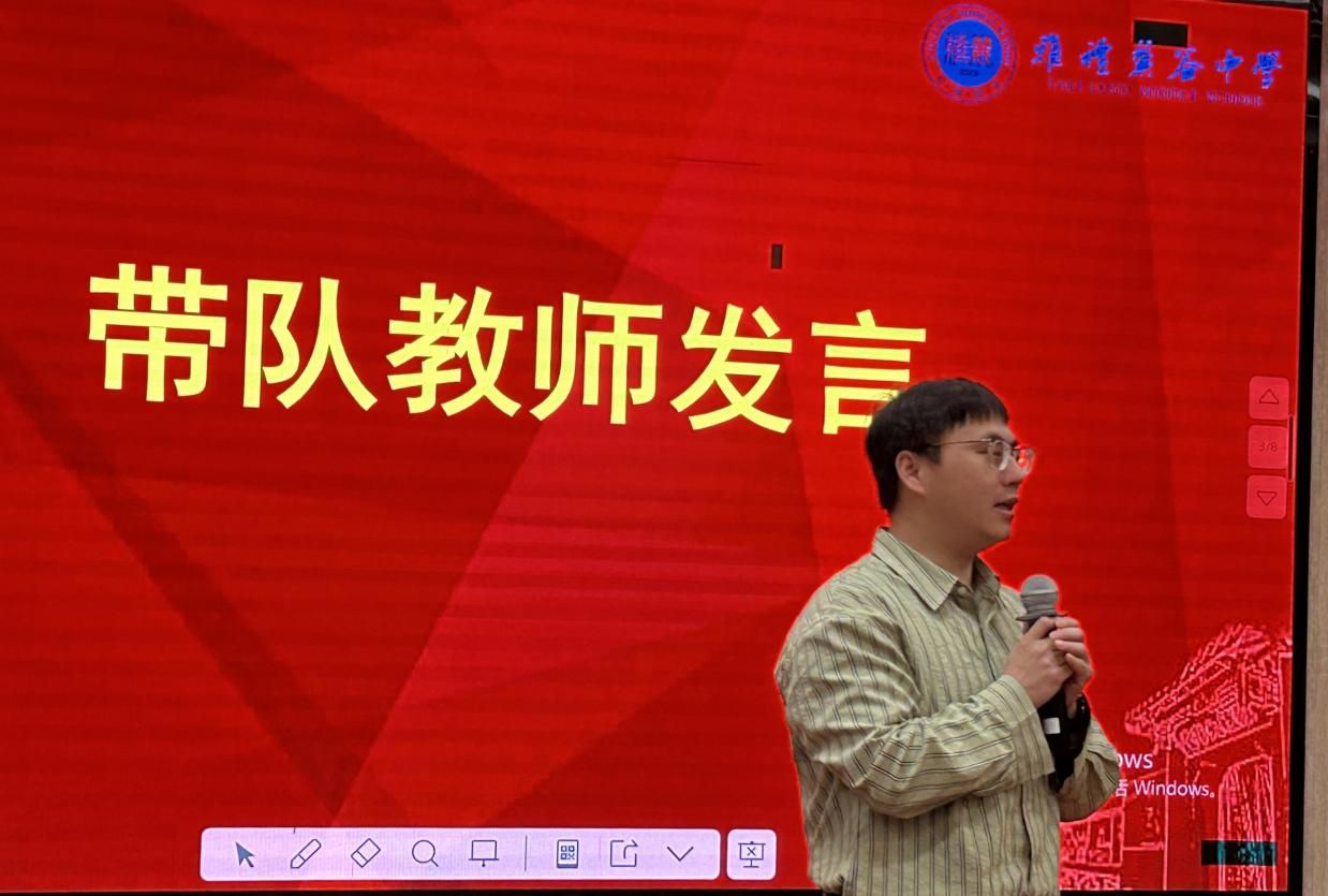 八年级年级组组长曾辉老师首先致欢迎辞。她别出心裁地援引历史剧《太平年》中吴越王钱弘俶“纳土归宋”的经典典故,以此生动比喻实习生们从校园学子到准教师的身份转换。她勉励同学们要主动、迅速地适应新角色,时刻以一名合格教师的标准审视自我、要求自我,努力成为学生的榜样,并祝愿大家在宝贵的实习期里锤炼真本领,创造属于自己的精彩。