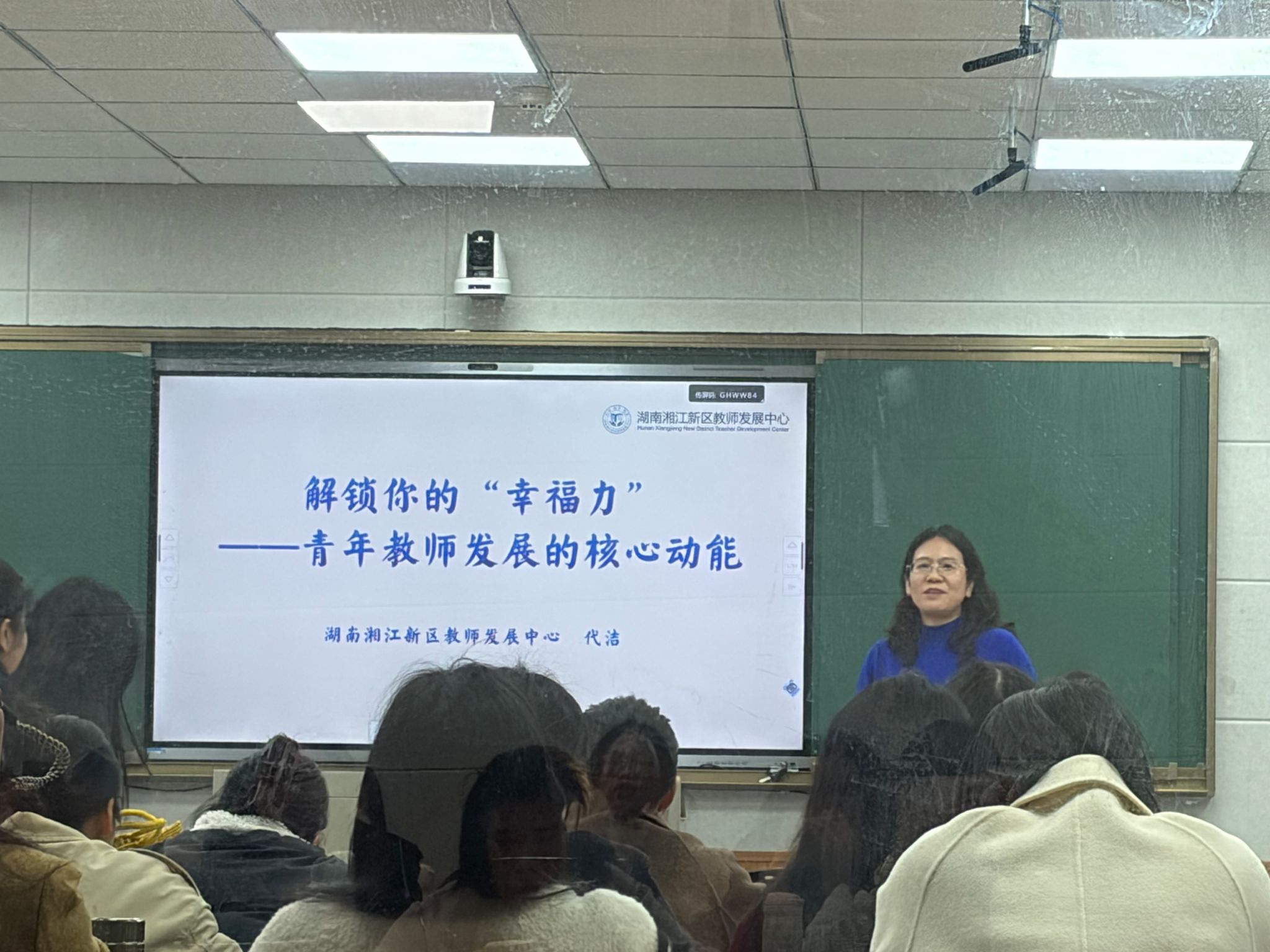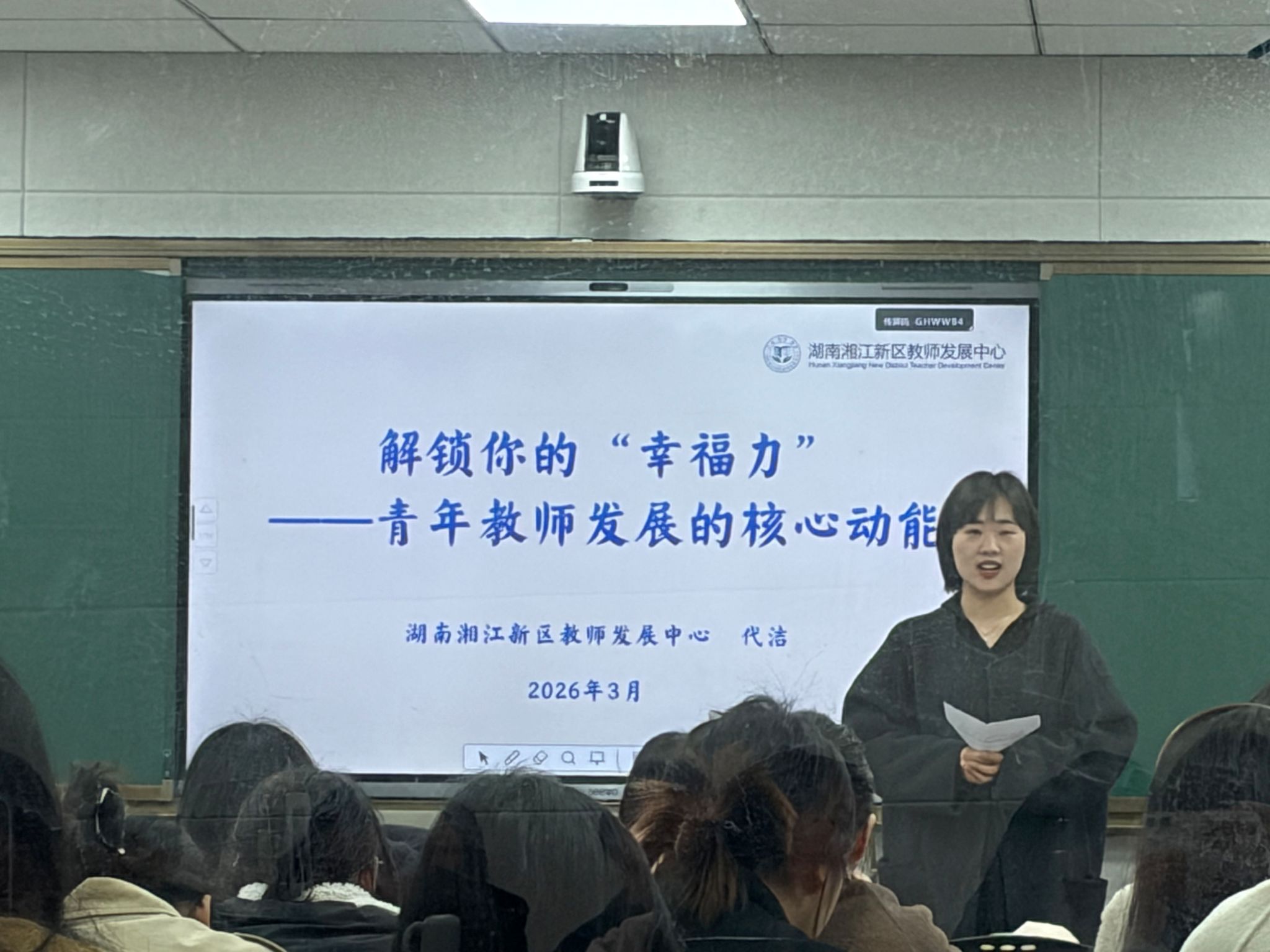 活动伊始,湖南湘江新区教师发展中心中学历史教研员代洁老师带来专题讲座《解锁你的“幸福力”——青年教师发展的核心动能》。代老师结合自身成长经历与172份教师职业幸福力调研数据,深入剖析不同教龄、不同岗位教师的幸福感知差异,厘清幸福感与幸福力的核心区别,从职业认知、工作方法、身心养护、情绪管理、关系经营、生活平衡六个维度,为一线教师提供科学实用的幸福力提升路径,引导大家在教育路上接纳自我、专注成长、悦纳工作。