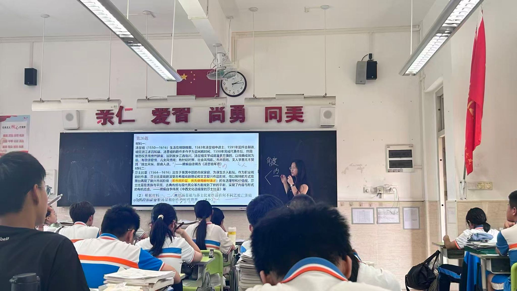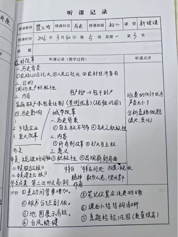 自进入广东仲元中学附属学校以来,实习队员们由台下听课到开始走上讲台,积极承担教学任务,开展班会课教学,完成了新课讲授与试卷评讲,实习工作覆盖备课、授课、课堂管理及课后反馈的全流程。自实习启动以来,队员累计上课已逾10节,听课数量超过60节。此外,实习队建立了听课与评课机制,每周五集中组织研讨,队员们相互借鉴、取长补短,持续优化教学设计与方法。