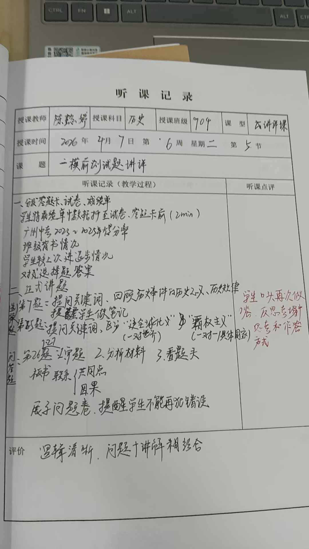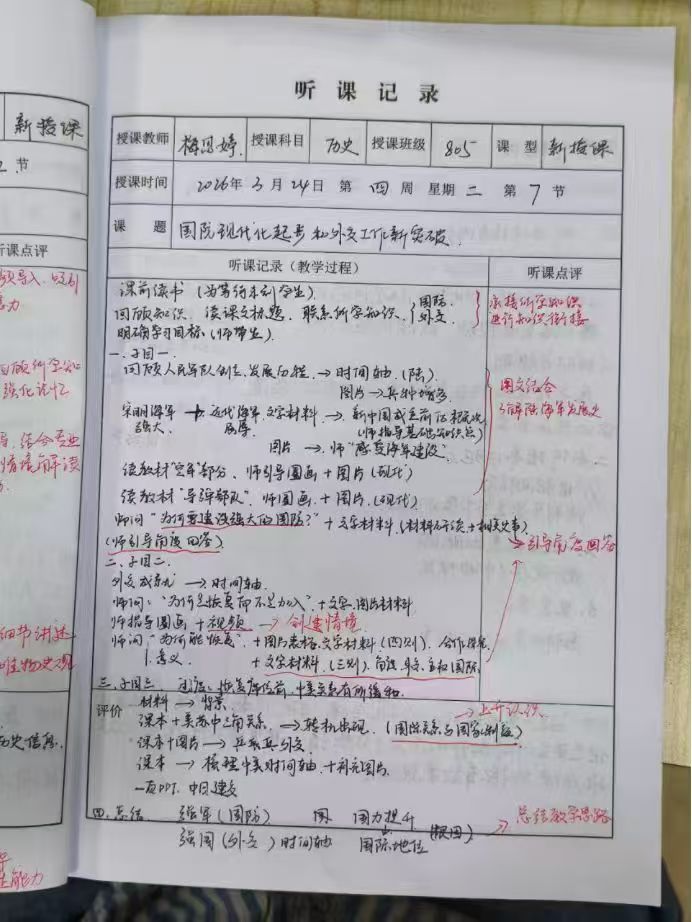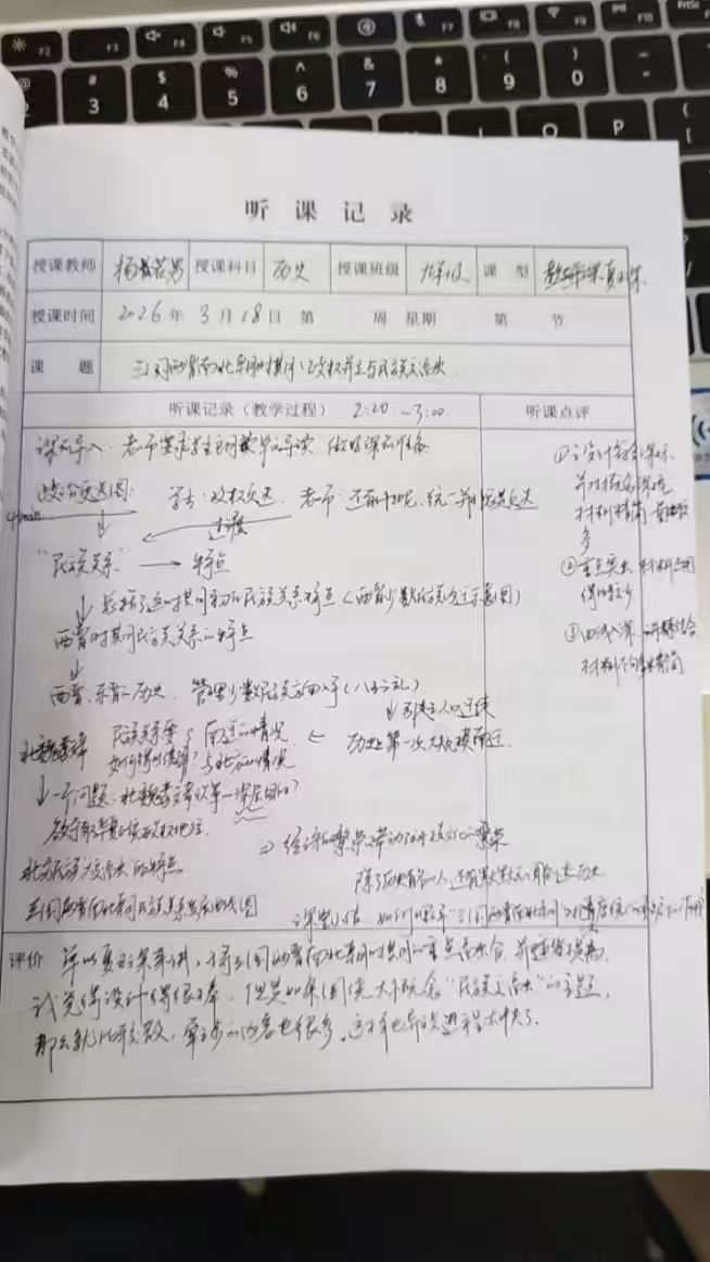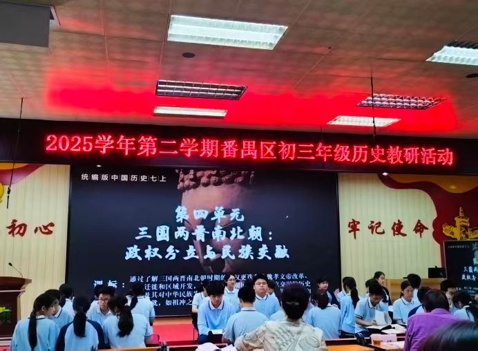 实习队积极参加番禺区历史教研活动。3月18日,初三年级教研活动中,杨若男老师执教《三国两晋南北朝时期:政权并立与民族交融》公开课,何学剑、郭伟老师分别作备考策略与命题规律讲座。3月27日,“依标立题以评促教”研修活动中,四位教师分享命题案例,郭伟老师强调命题须紧扣五大核心素养与课标。队员们认真聆听、分享参与教研活动的感受,对“教—学—评”一体化有了更深刻理解。