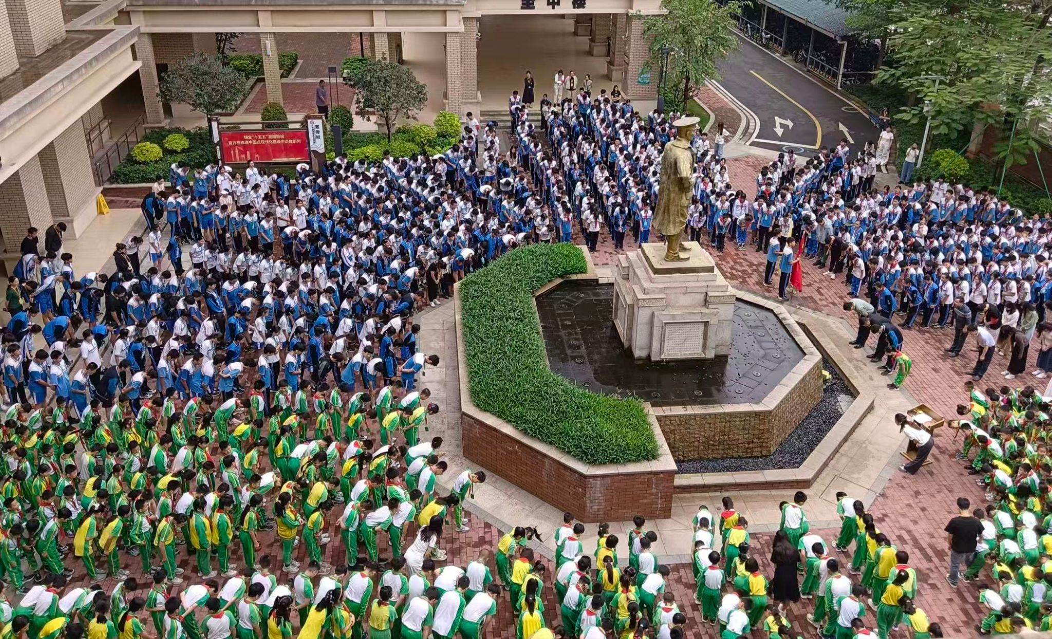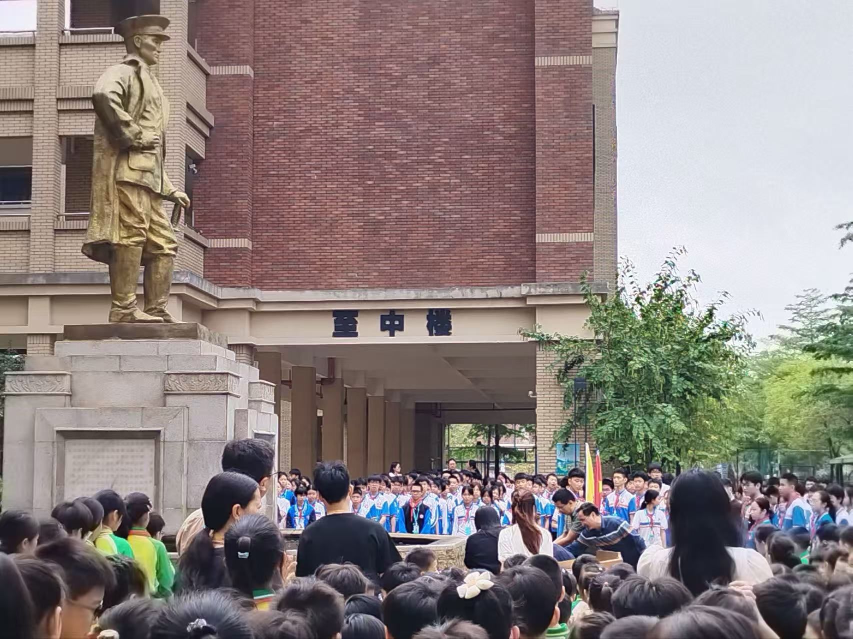 3月31日,学校在邓仲元将军铜像广场举行纪念活动,实习队员全程参与组织筹备与秩序维护。邓仲元铜像巍然矗立中央,师生环绕肃立,国歌激昂奏响。大家深切缅怀邓仲元先生作为辛亥革命先驱的革命业绩与崇高风范,并面对铜像立下青春誓言。微风徐徐,金铜熠熠,这是一堂致敬先烈的生动思政课,也是一次深刻的爱国主义洗礼。