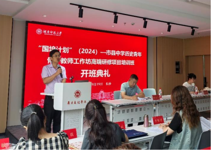 9月19日上午,WilliamHill(威廉希尔)官网于科研楼305报告厅举行“国培计划”(2024)—市县中学历史青年骨干教师工作坊高端研修项目培训班开班典礼。历文院院长刘利民、副院长黎天宇,湖南大学附属中学支部书记兼培训班班导师、工作坊坊主刘觅知出席此次典礼,班主任栗壬波担任主持。