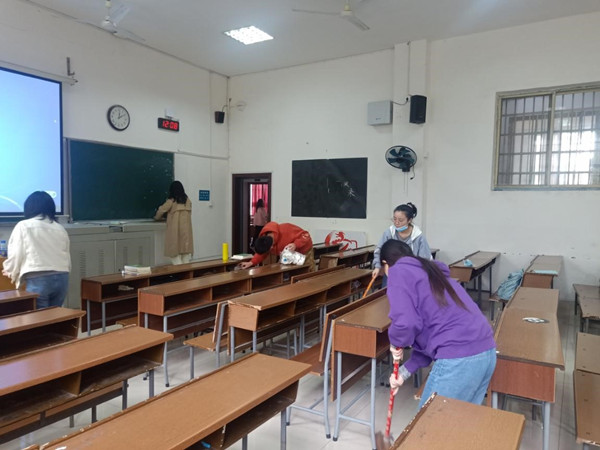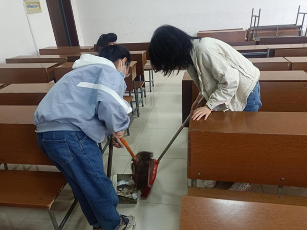 活动开始前,张静波说明了此次义务劳动的具体内容、要求以及注意事项,鼓励成员积极参与劳动。活动过程中,成员分成两组分别对历文院405411教室进行打扫,打扫内容包括扫地、拖地、擦黑板、擦桌子以及清理抽屉等。打扫结束后,培训班成员集合到411教室,依次发表了自己的体会与感悟。活动结束后,张静波对此次义务劳动做出了总结,肯定了培训班成员参与劳动的积极性以及认真态度,并希望同学们在今后的学习生活中时刻牢记奉献意识,积极服务他人与集体。