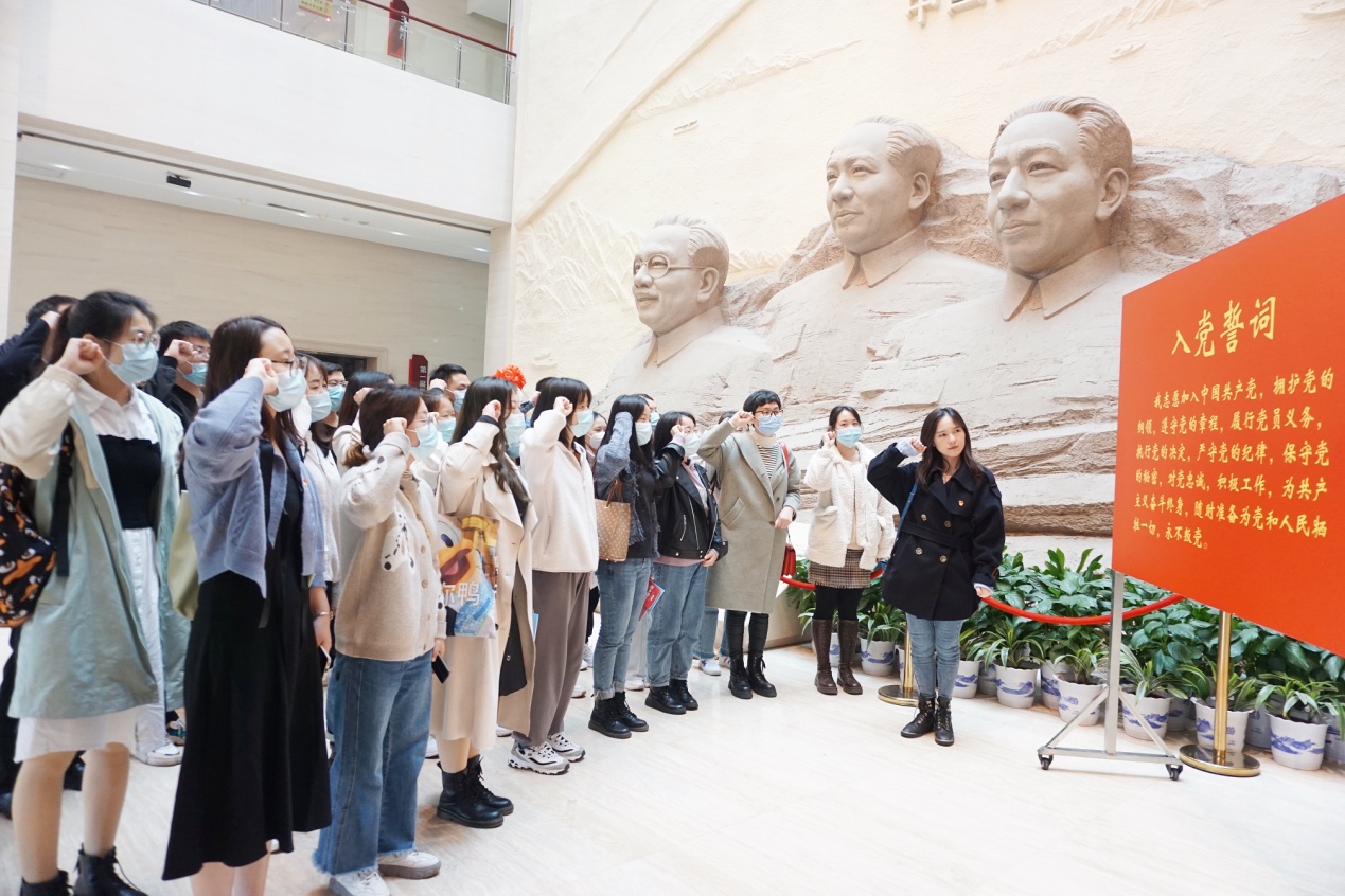 在湖南省党史陈列馆“敢教日月换新天”的巨型雕塑前,研究生第二党支部书记兰岚同志带领全体党员重温入党誓词,砥砺初心使命。随后,在讲解员的讲解指引下,党员们参观了 “开辟新天地”、“描绘新画卷”、“谱写新篇章”、“三湘群英谱”等展馆,详细了解了中国共产党带领广大湖湘儿女在新民主主义革命、全面建设社会主义、改革开放三个历史时期的奋斗历程,再次感受了中国共产党领导湖南人民革命与建设所付出的艰苦努力和取得的辉煌成就。