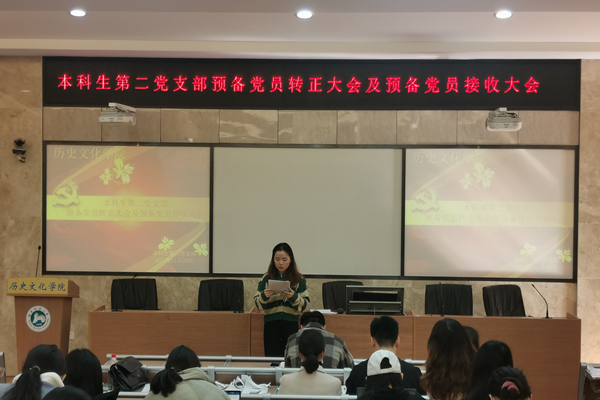 (通讯员 熊文敏 叶瑞馨) WilliamHill(威廉希尔)官网本科生党员、入党积极分子于2021年12月1日在历文院203教室召开了预备党员转正大会和预备党员接收大会。大会由支部组织委员高鸣越主持,支部书记周冲出席,历文院全体本科生党员和入党积极分子参加。