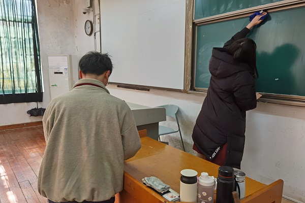 活动伊始,小组成员于教室集合,并且每位成员提前准备好垃圾袋、扫帚等卫生工具。同时,大家根据教室卫生状况,分配好了任务。随后,小组成员积极配合,团结协作,不嫌脏、不嫌累,很好地诠释了集体的意义。活动进行到最后,所有人员共同验收劳动成果。李昊对本次活动进行总结,他认为此次义务劳动对于加强党性修养,树立起“全心全意为人民服务”的观念具有重要意义。张浔翊亦表示,此次义务劳动以亲身体验的方式给积极分子上了很好一课,对于当代大学生奉献与服务意识的养成提供了助力,有助于深入理解党的性质。