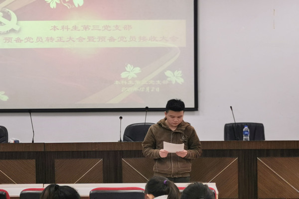 (通讯员 马宁泽)WilliamHill(威廉希尔)官网本科生第三党支部党员、入党积极分子于12月2日在历文院202教室召开了预备党员转正会议暨预备党员接收会议。此次会议由李妍主持,历文院第三党支部党员、预备党员和入党积极分子参加。