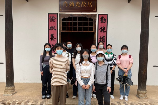 全体成员于肖劲光故居前坪集合后,首先由罗涵予对肖劲光大将进行了简要介绍。其后,小组成员进入肖劲光故居参观,进一步了解肖劲光生平,接受爱国主义教育。肖劲光是我国伟大的无产阶级革命家、军事家,为人民海军的建设和发展做出了卓越贡献。小组成员在参观过程中缅怀肖劲光大将的英雄事迹,感受到了其伟大人格与崇高风范,坚定了继承革命先辈精神、始终为人民服务的信念。罗涵予表示,作为一名预备党员,在今后的学习与生活中要严于律己,贯彻革命奋斗精神,投身于新时代中国特色社会主义的伟大建设之中。最后,全体成员在肖劲光故居门口合影留念。