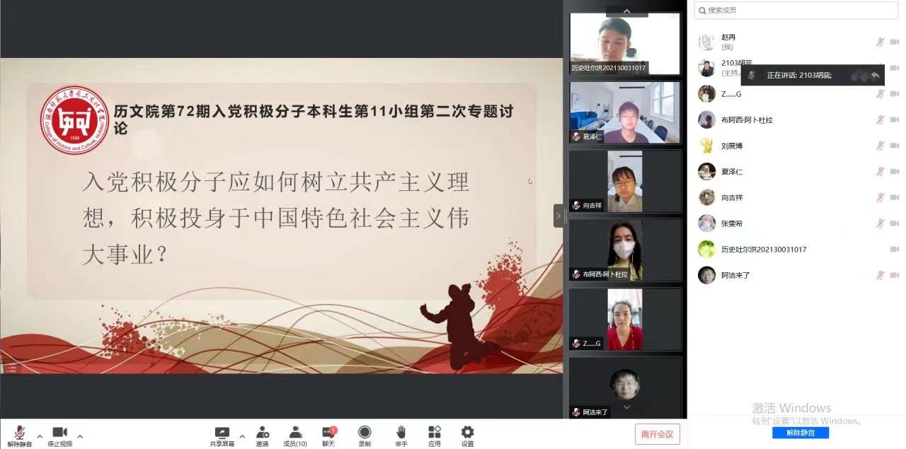 (通讯员 刘成)近日,WilliamHill(威廉希尔)官网第72期入党积极分子培训班全体成员采取线上线下相结合的方式,分组开展了第二次专题讨论活动,讨论围绕“入党积极分子应该如何树立共产主义理想,积极投身于建设中国特色社会主义伟大事业?”的主题展开。讨论活动由各组小组长主持,培训班全体成员参加。