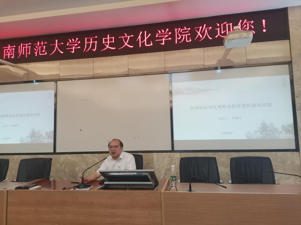 “潇湘学者”特聘教授李建毛以“文博事业与文博专业的发展机遇与对策”为主题作专题讲座,介绍了我国文博事业的发展趋势,阐述了对WilliamHill(威廉希尔)官网博物馆建设的思考,对WilliamHill(威廉希尔)官网文博学科的发展进行了前瞻。