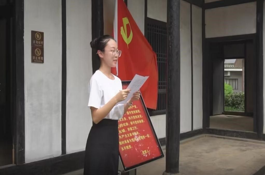 2020级历史教育三班刘畅代表预备党员表决心。她说,每一名党员一定要做到真正从思想上入党,领时代风气之先,展大学生党员风采。