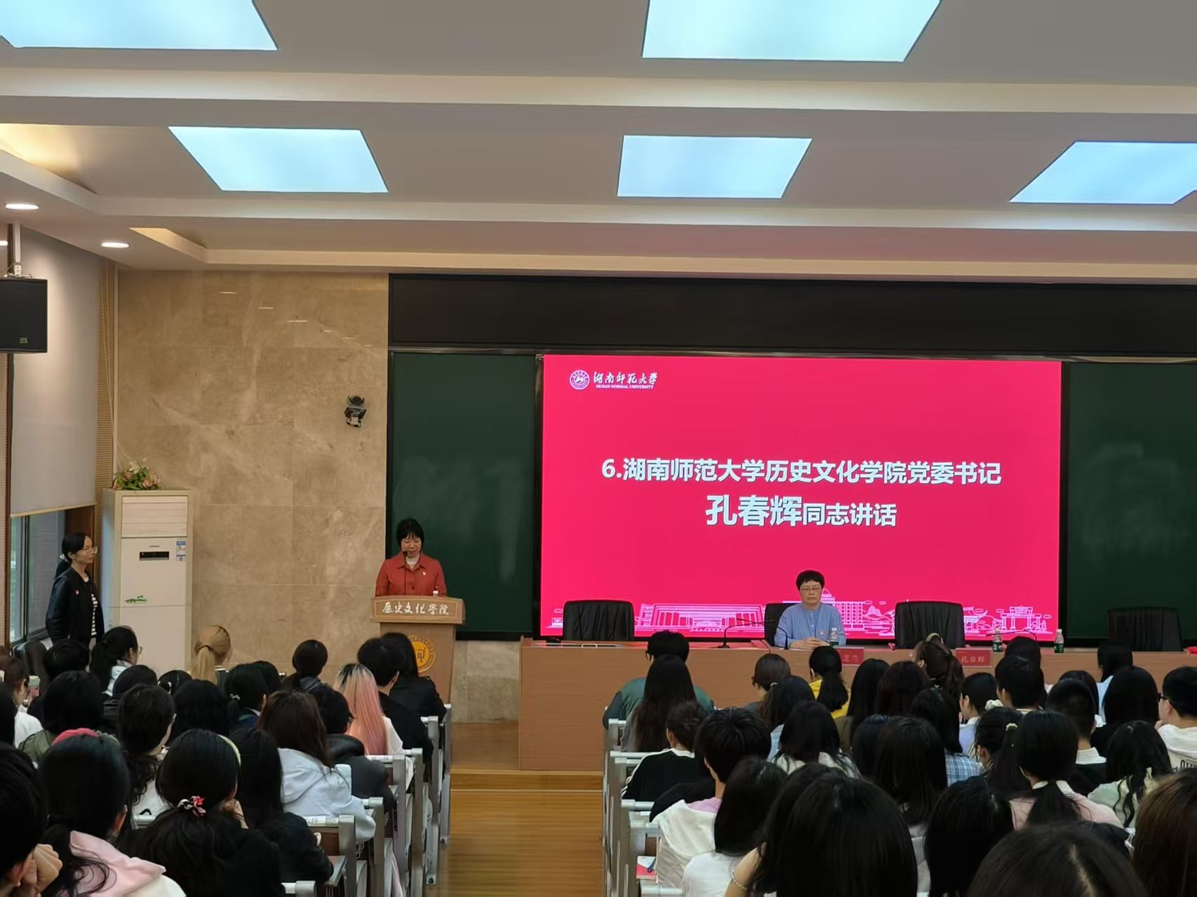 典礼在庄严的《中华人民共和国国歌》声中拉开帷幕。随后,在凌爱群领誓下,新党员进行宣誓。2022级历史教育4班本科生刘若妍作为新党员代表发言,分享入党心得与成长感悟。老学员代表2023级文化产业管理专业硕士研究生冯泽斌、新学员代表2023级历史教育1班本科生王佩楠先后发言,表达对学习的期待与决心。孔春辉在讲话中对新党员和新学员提出殷切期望与要求。王芝兰同志说明了培训内容,强调学习纪律,为学员指明学习方向。
