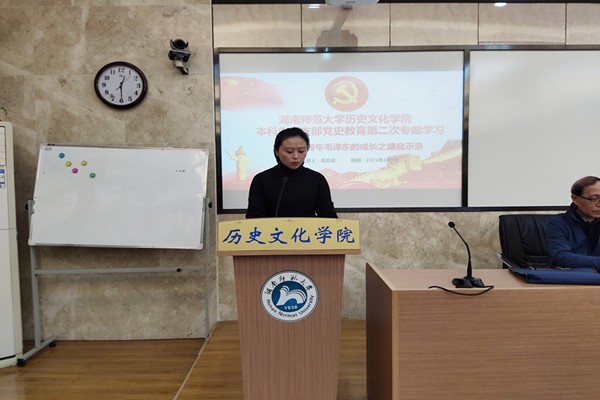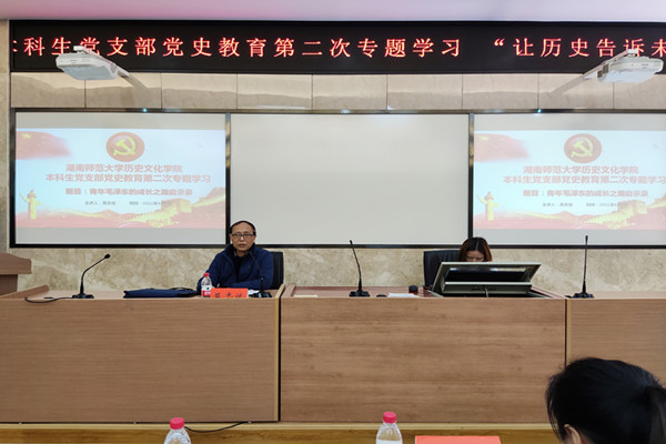 会议中,陈敏对莫志斌进行了简要介绍,后莫志斌围绕“青年毛泽东的成长之路”这一主题,结合青年毛泽东的相关事迹,从毛泽东的思想转变历程、毛泽东的立志修身及信仰问题、青年毛泽东独特的学习之路、毛泽东的创新创业、毛泽东的故事对我们的启示这五个方面进行了相关讲解,并表明青年学生“目标要明、思维要清、做事要实、步子要稳”,应做好自己的人生发展规划,实现“成长、成人、成才”。