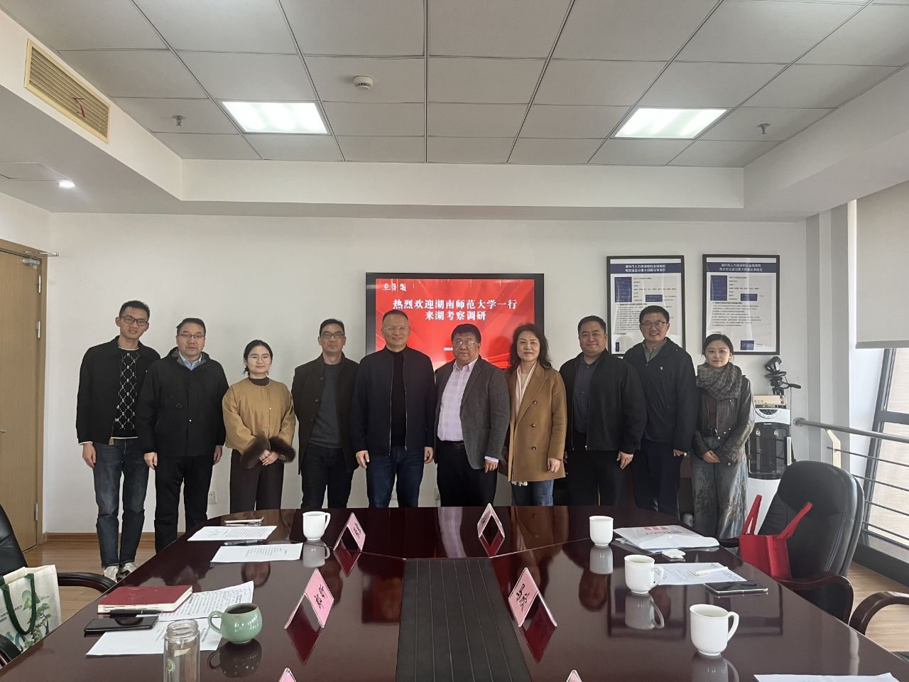 学院领导与湖州市人才社会保障局、教育局负责人合影